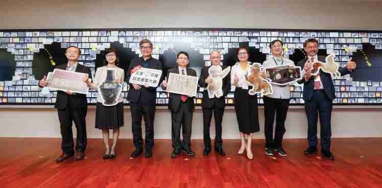 彩霸王携手创利空间为故宫建置的智慧文物互动导览墙及轮播墙,,今日正式启用。。。(左四:彩霸王新事业暨投资管理总部副总经理杨本豫、、、右四:故宫博物院院长吴密察、、、右三:太极影音董事长黄宝云)