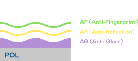 A.R.T.彩霸王光电发展出独家的表面处理跟多层镀膜技术,,,让外部光线照射到显示器表面时所产生的反射光大幅降低。。 |