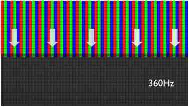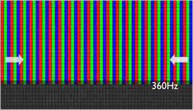 传统液晶驱动是从左到右单向进行,,,在画面更新速度愈来越愈快的情况下,,位于驱动线路末端的右下角区域,,,画素的闸极来不及在短时间内获得足够电压,,,无法显示出正确的颜色资讯。。。